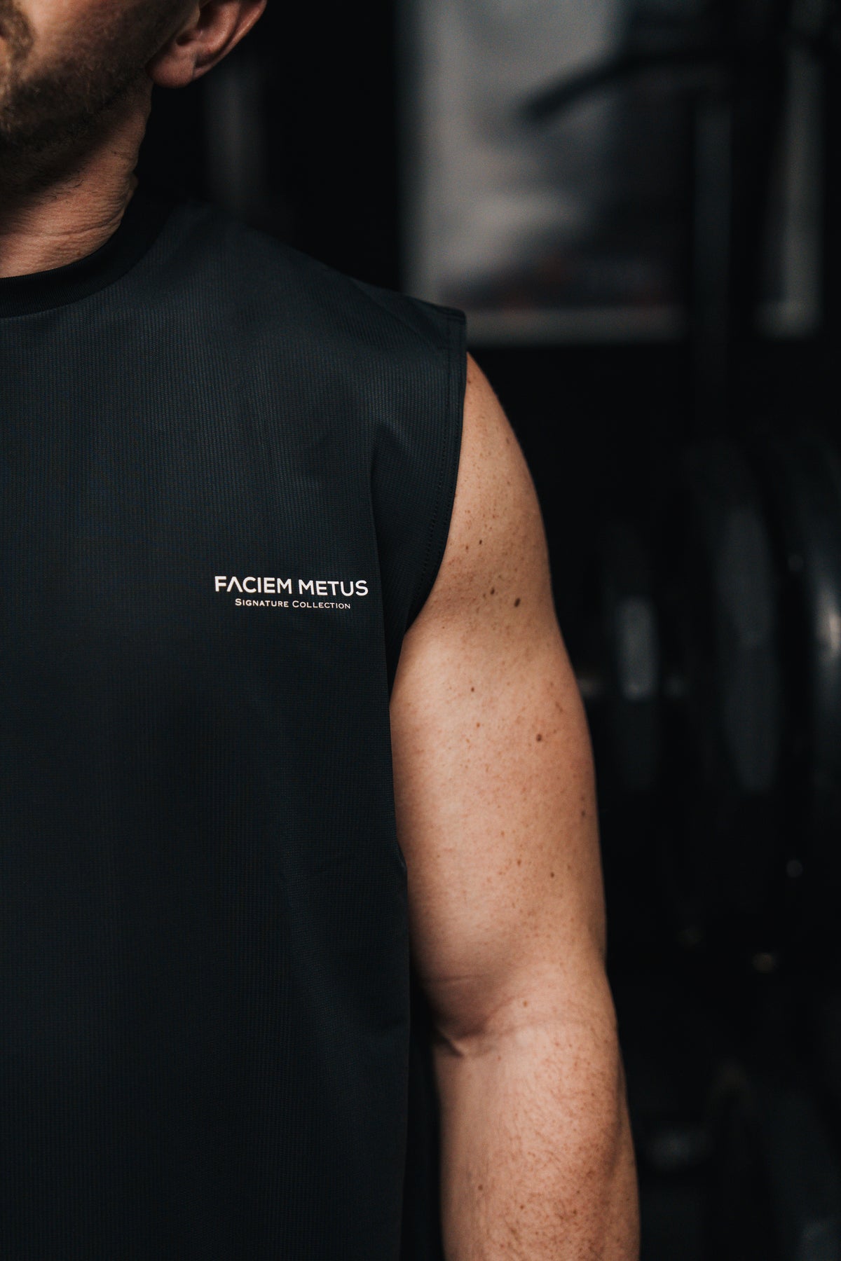 Finished with subtlewhite Faciem Metus branding on the chest and back for a clean, sharp look.