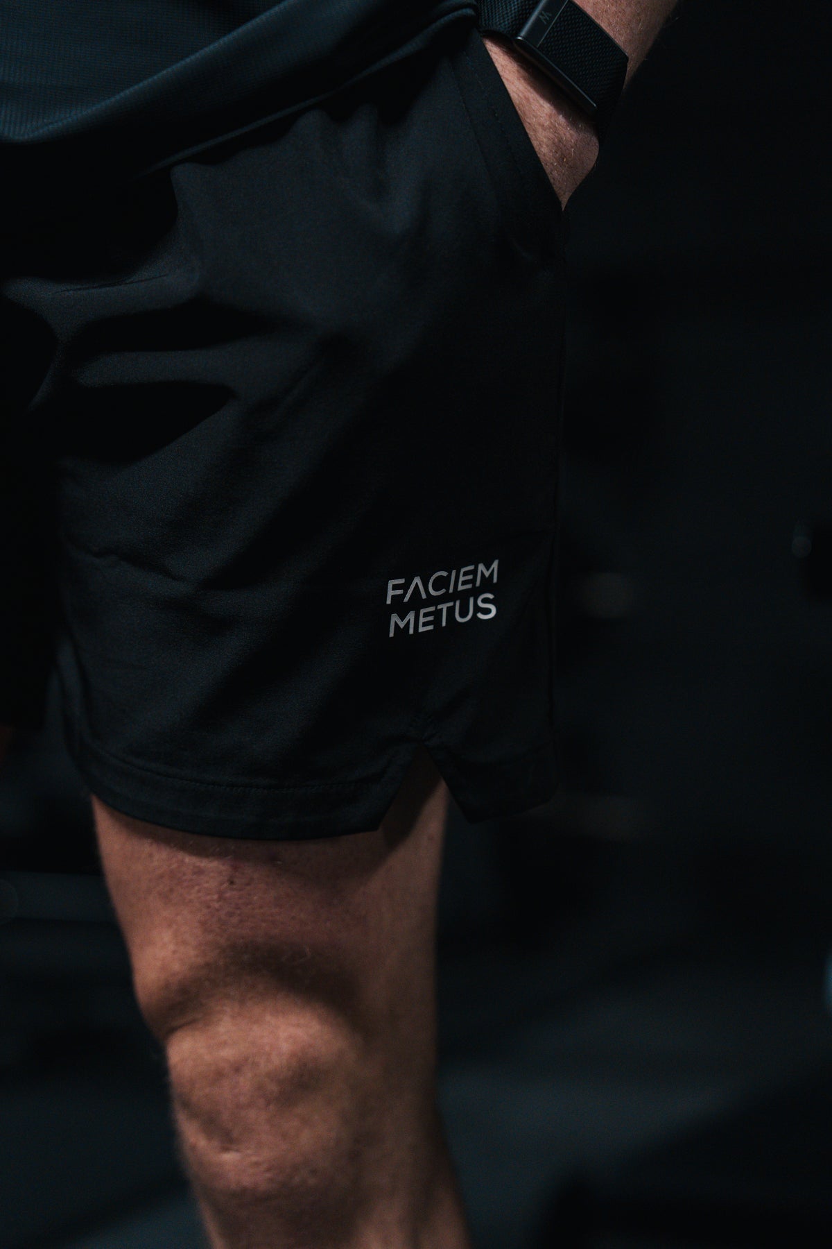 Introducing the Faciem Metus Signature Collection Shorts in black. Designed for those who train with purpose, they are built for both speed and strength, for every lift, and run.